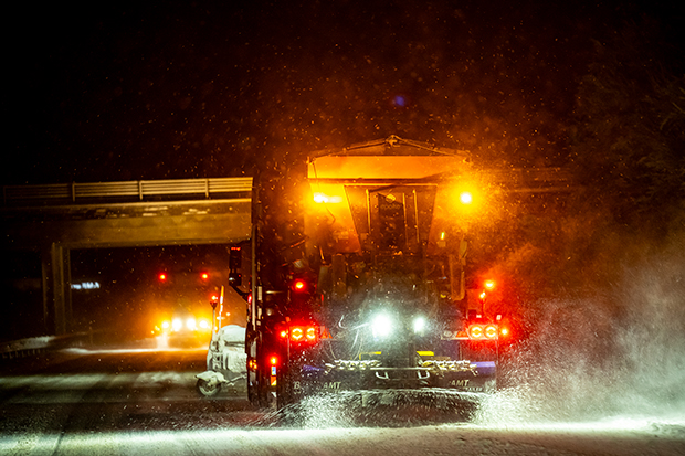 Der saltes stadig på vintervejene. Foto: Vejdirektoratet.